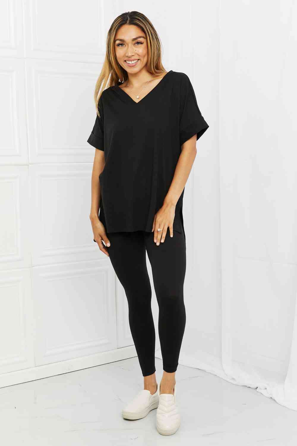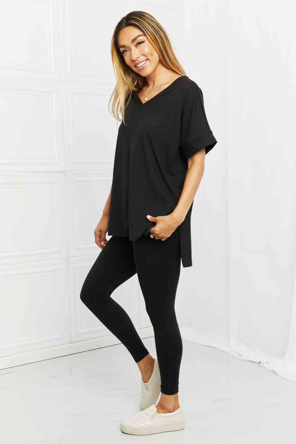 Zenana Self Love Full Size Brushed DTY Microfiber Lounge Set in Black